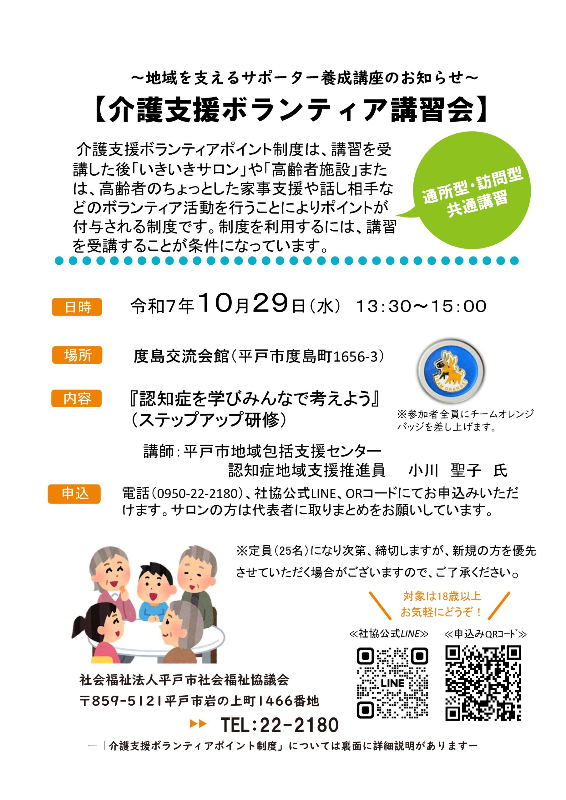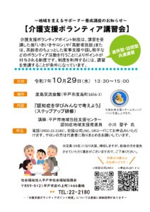 10/29介護支援ボランティア講習会を開催します