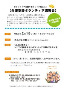 2/19介護支援ボランティア講習会を開催します